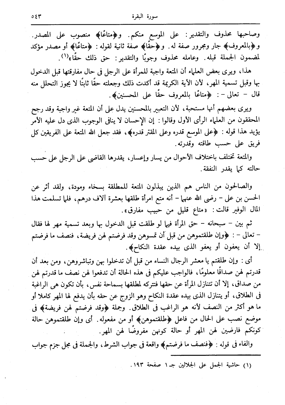 (1) حاشية الجمل على الجلالين ج 1 صفحة 193. [.....]