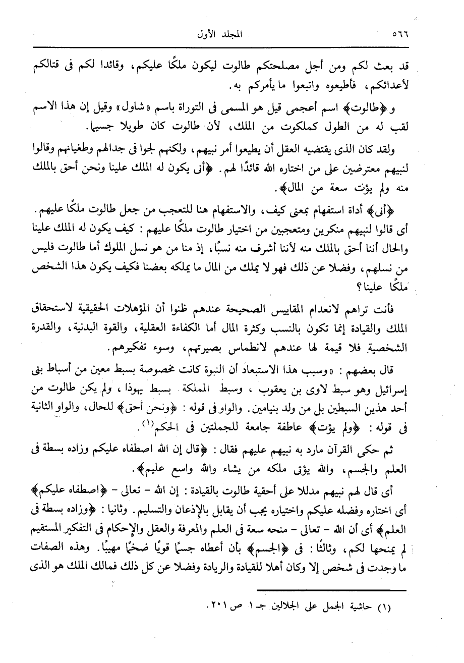 (1) حاشية الجمل على الجلالين ج 1 ص 201.
