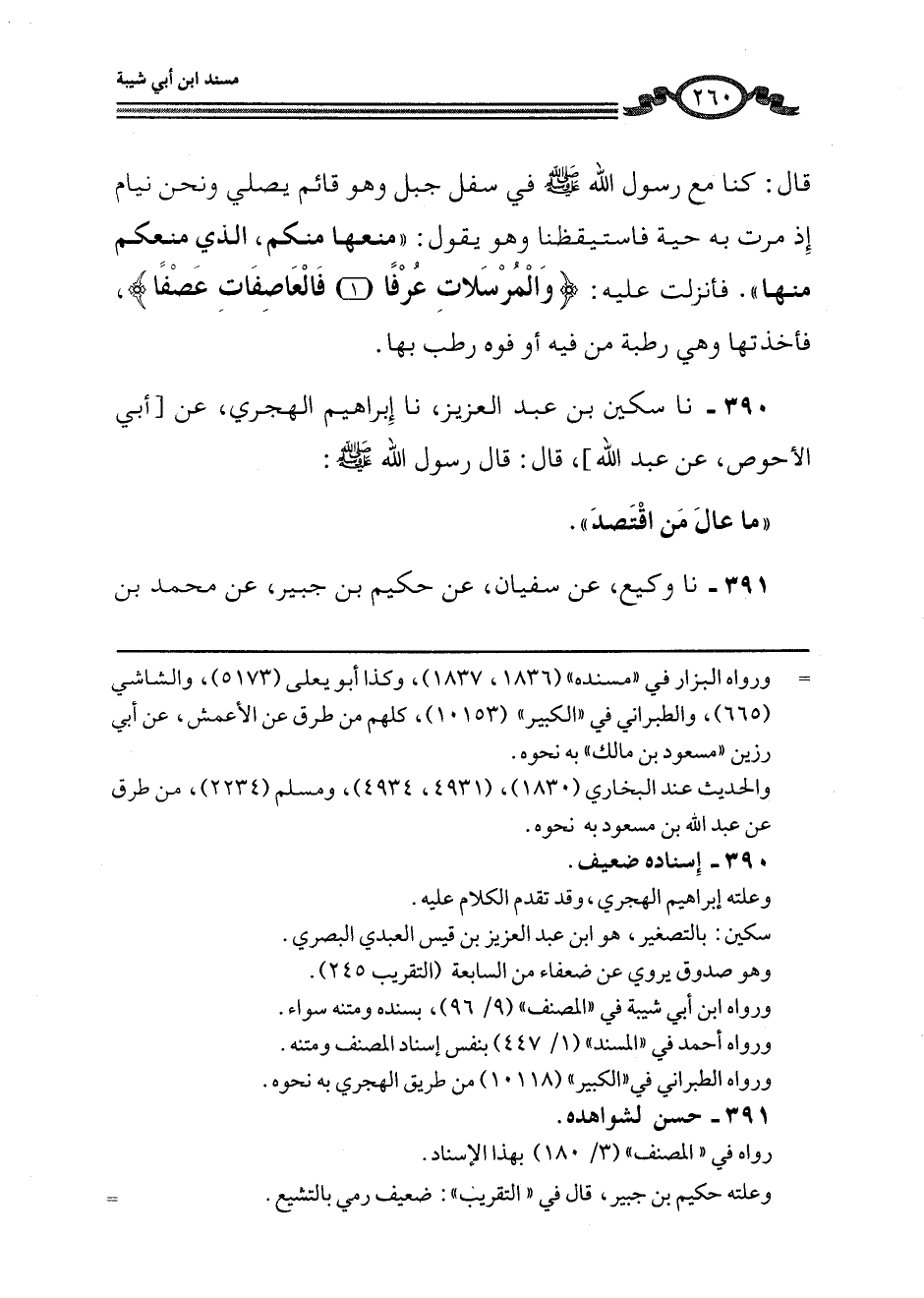 390 - نا سِكِّينُ بْنُ عَبْدِ الْعَزِيزِ، نَا إِبْرَاهِيمُ الْهَجَرِيُّ، عَنْ أَبِي الْأَحْوَصِ، عَنْ عَبْدِ اللَّهِ، قَالَ: قَالَ رَسُولُ اللَّهِ صَلَّى اللهُ عَلَيْهِ وَسَلَّمَ: «§مَا عَالَ مَنِ اقْتَصَدَ»