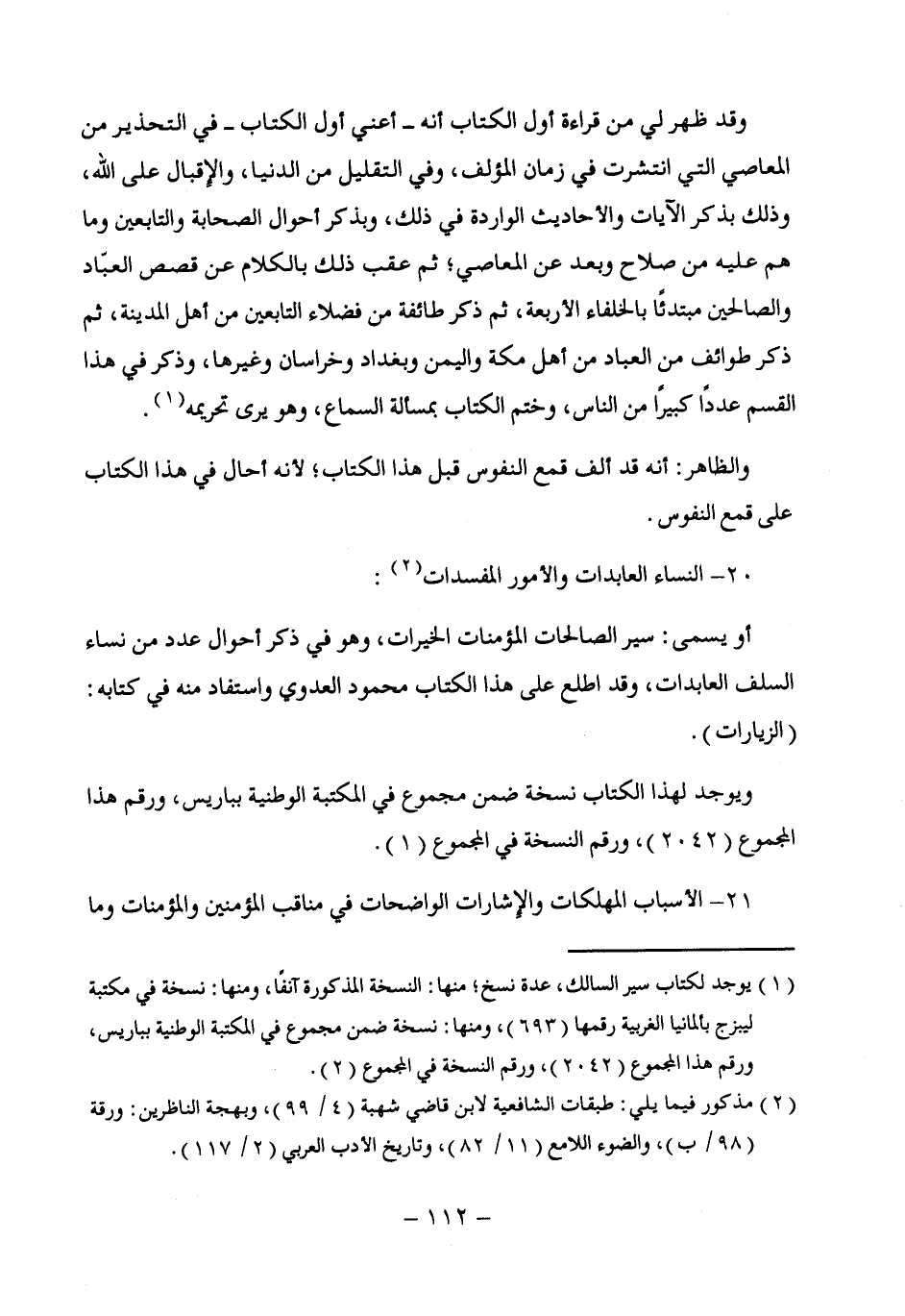 (¬1) يوجد لكتاب سير السالك، عدة نسخ؛ منها: النسخة المذكورة آنفًا، ومنها: نسخة في مكتبة ليبزج بألمانيا الغربية رقمها (693)، ومنها: نسخة ضمن مجموع في المكتبة الوطنية بباريس، ورقم هذا المجموع (2042)، ورقم النسخة في المجموع (2).