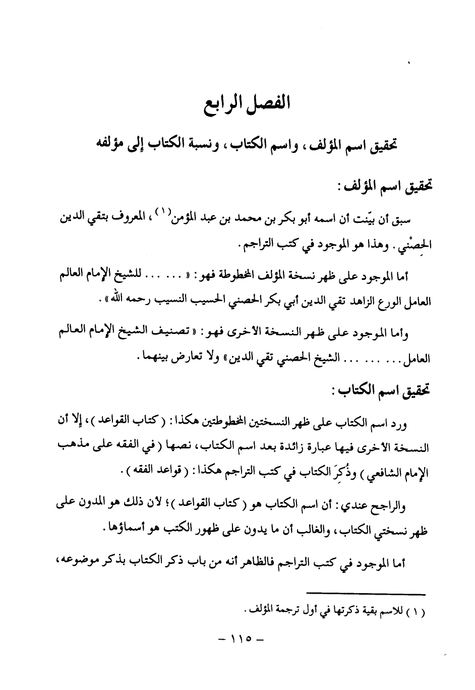 الفصل الرابع تحقيق اسم المؤلف، واسم الكتاب، ونسبة الكتاب إِلى مؤلفه