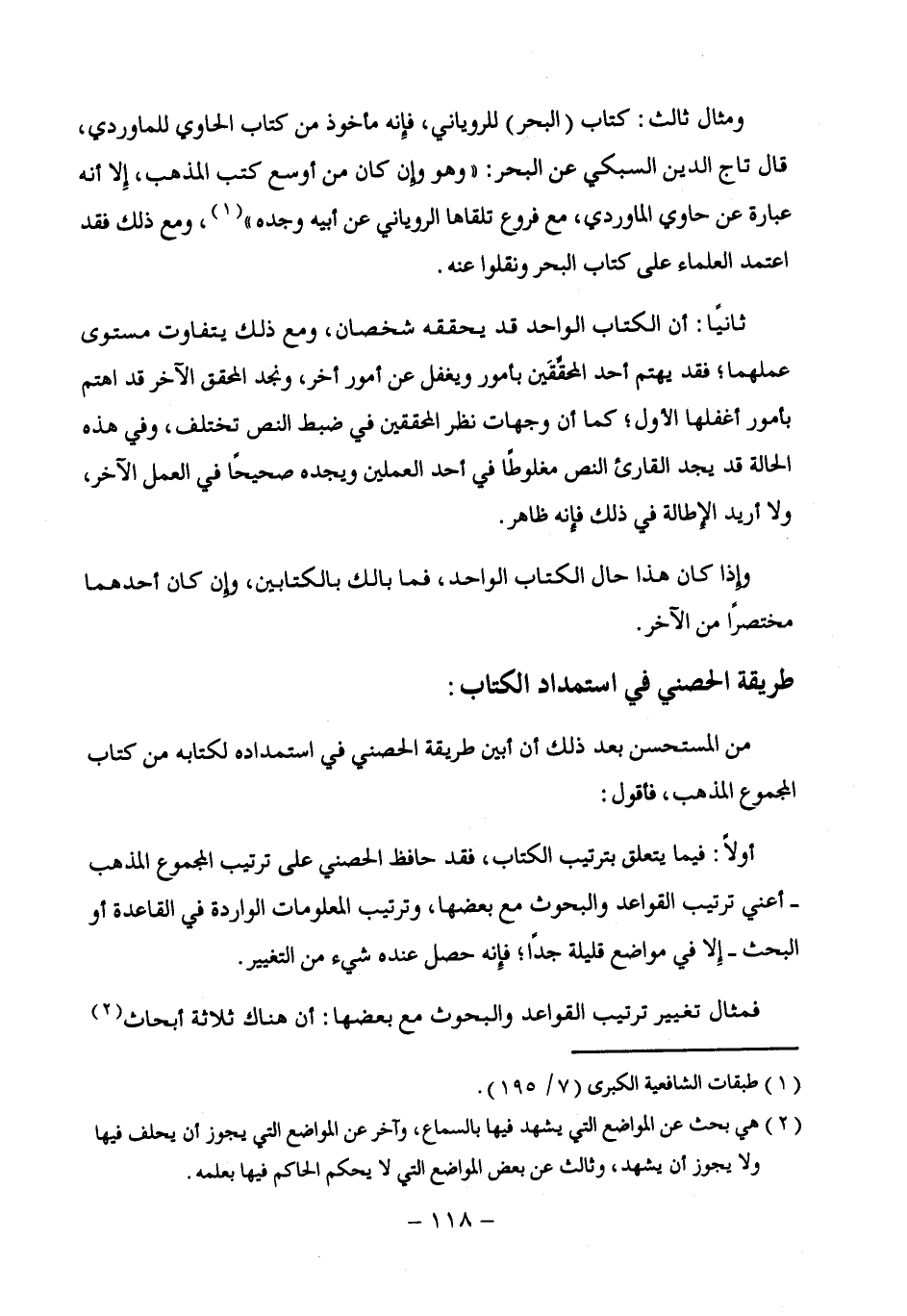 ومثال ثالث: كتاب (البحر) للروياني، فإِنه مأخوذ من كتاب الحاوي للماوردي، قال تاج الدين السبكي عن البحر: "وهو وإن كان من أوسع كتب المذهب، إِلا أنه عبارة عن حاوي الماوردي، مع فروع تلقاها الروياني عن أبيه وجده" (¬1)، ومع ذلك فقد اعتمد العلماء على كتاب البحر ونقلوا عنه.