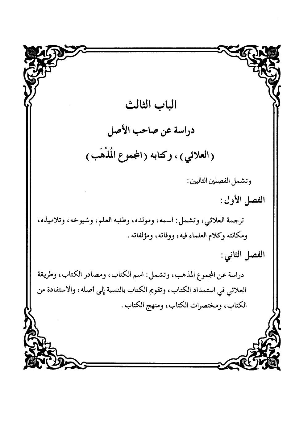 الباب الثالث دراسة عن صاحب الأصل (العلائي)، وكتابه (المجموع المُذْهَب)
