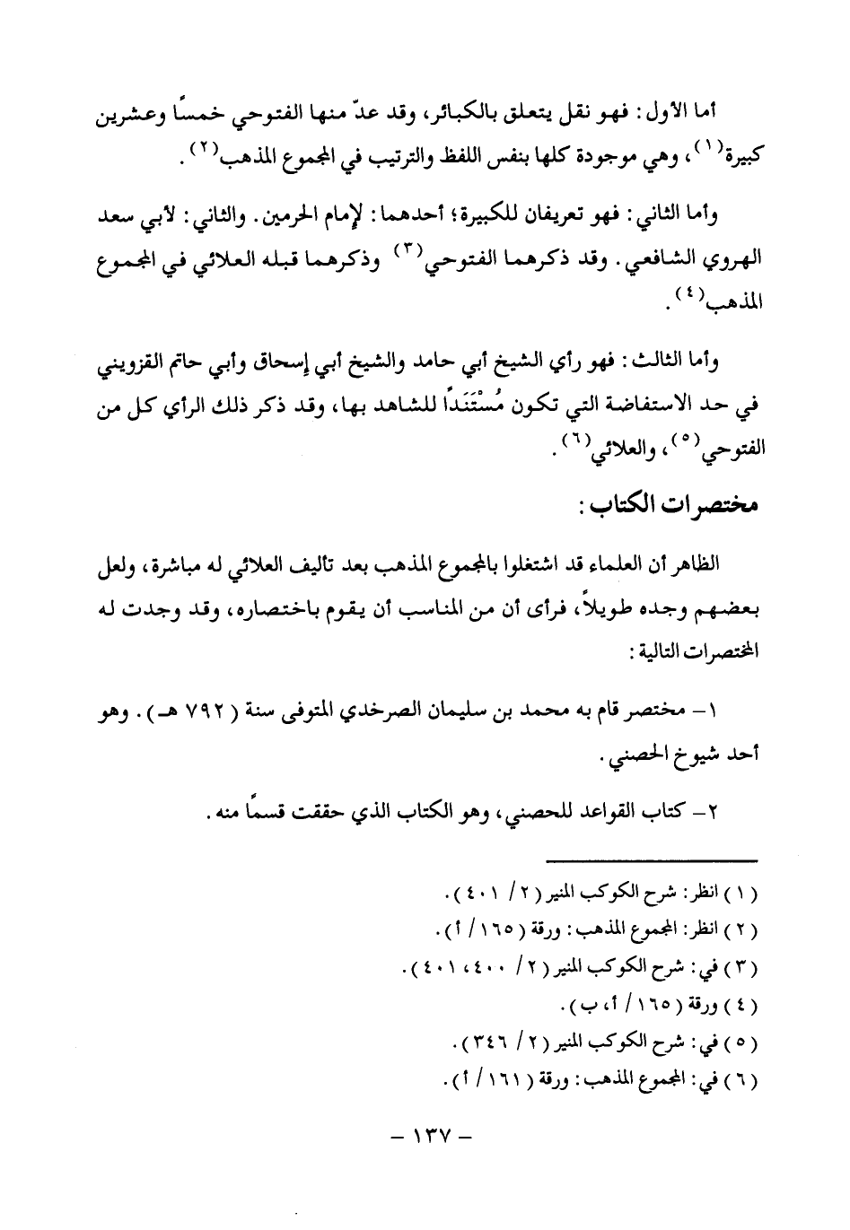 وأما الثاني: فهو تعريفان للكبيرة، أحدهما: لإِمام الحرمين. والثاني: لأبي سعد الهروي الشافعي. وقد ذكرهما الفتوحي (¬3) وذكرهما قبله العلائي في المجموع المذهب (¬4).