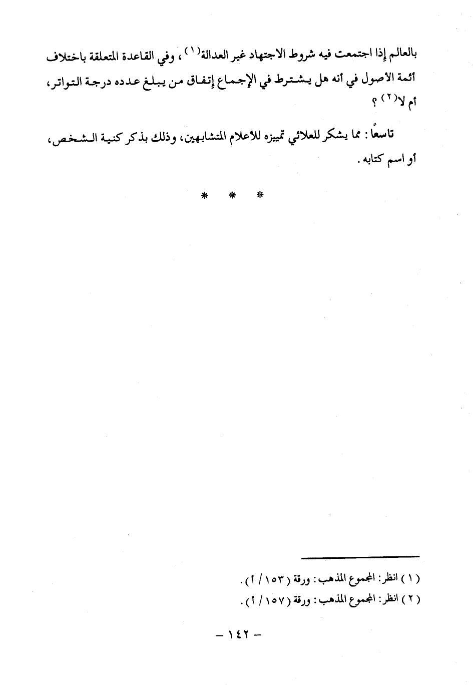 بالعالم إِذا اجتمعت فيه شروط الاجتهاد غير العدالة (¬1)، وفي القاعدة المتعلقة باختلاف أئمة الأصول في أنه هل يشترط في الإِجماع إِتفاق من يبلغ عدده درجة التواتر، أم لا (¬2)؟