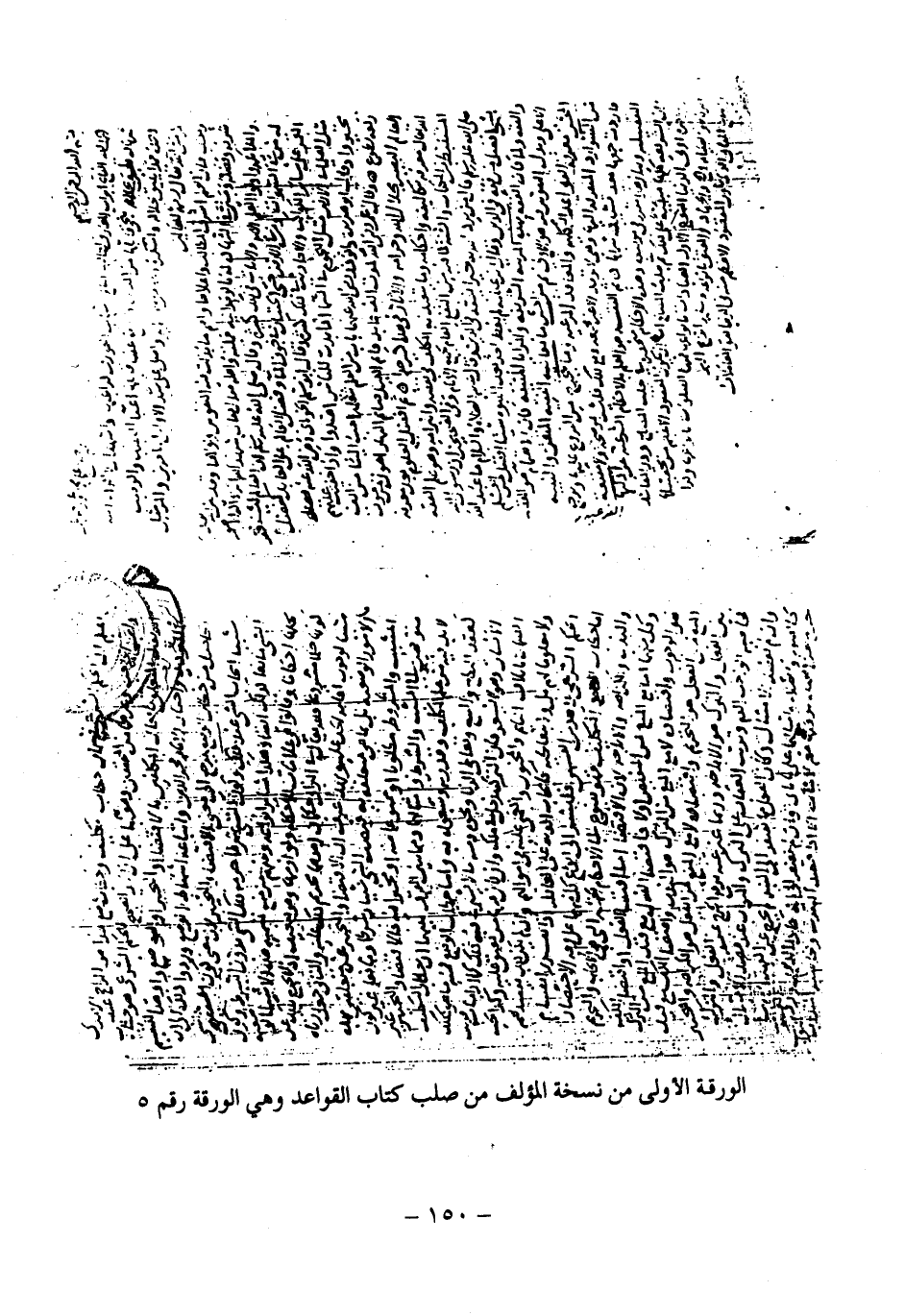 الورقة الأولى من نسخة المؤلف من صلب كتاب القواعد وهي الورقة رقم 5