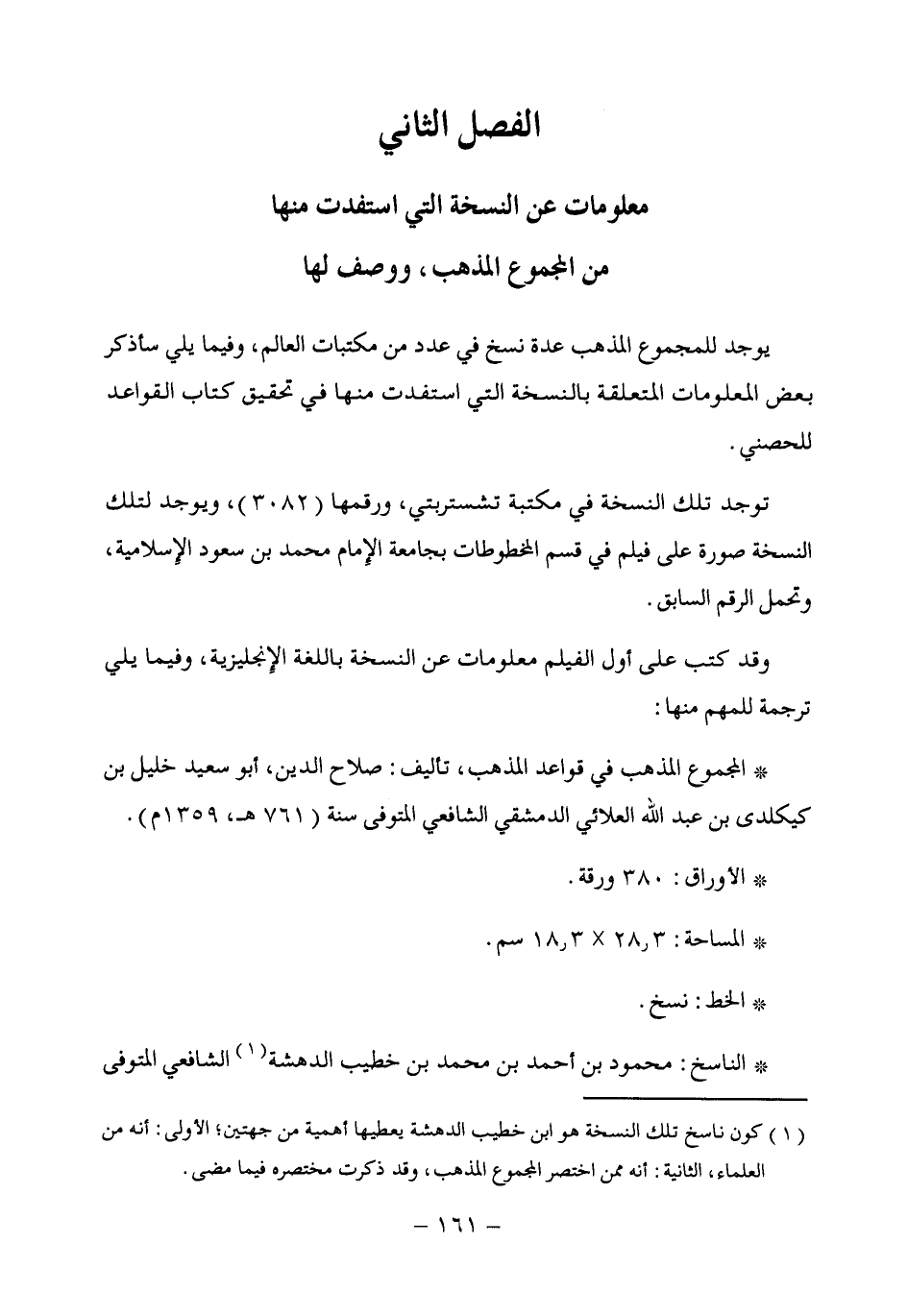 الفصل الثاني معلومات عن النسخة التي استفدت منها من المجموع المذهب، ووصف لها