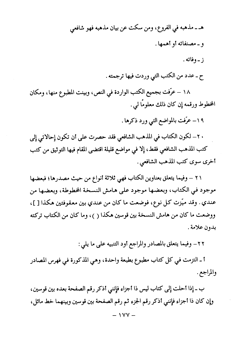 20 - لكون الكتاب في المذهب الشافعي فقد حصرت على أن تكون إِحالاتي إِلى كتب المذهب الشافعي فقط، إِلا في مواضع قليلة اقتضى المقام فيها التوثيق من كتب أخرى سوى كتب المذهب الشافعي.