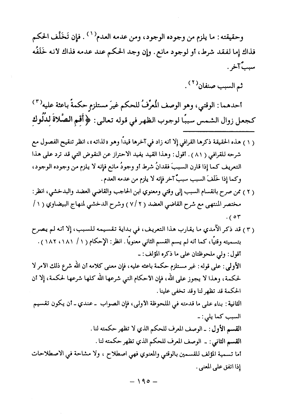 (¬2) ممن صرح بانقسام السبب إِلى وقتي ومعنوي ابن الحاجب والقاضي العضد والبدخشي، انظر: مختصر المنتهى مع شرح القاضي العضد (2/ 7) وشرح الدخشي لمنهاج البيضاوي (1/ 53).