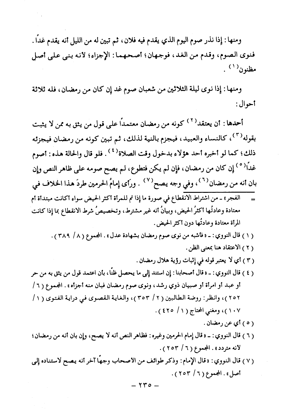(¬6) قال النووي: - "قال إِمام الحرمين وغيره: فظاهر النص أنه لا يصح، وإِن بان أنه من رمضان؛ لأنه متردد". المجموع (6/ 253).