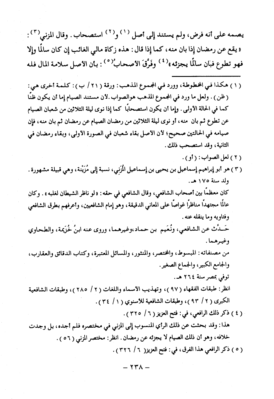 (¬3) هو أبو إِبراهيم إِسماعيل بن يحيى بن إِسماعيل المُزَنِي، نسبة إِلى مُزَيْنة، وهي قبيلة مشهورة. ولد سنة 175 هـ.