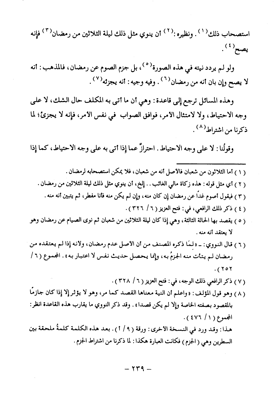 (¬5) يقصد بها الحالة الثالثة، وهي إِذا كان ليلة الثلاثين من شعبان ثم نوى الصيام عن رمضان وهو لا يعتقد أنه منه.