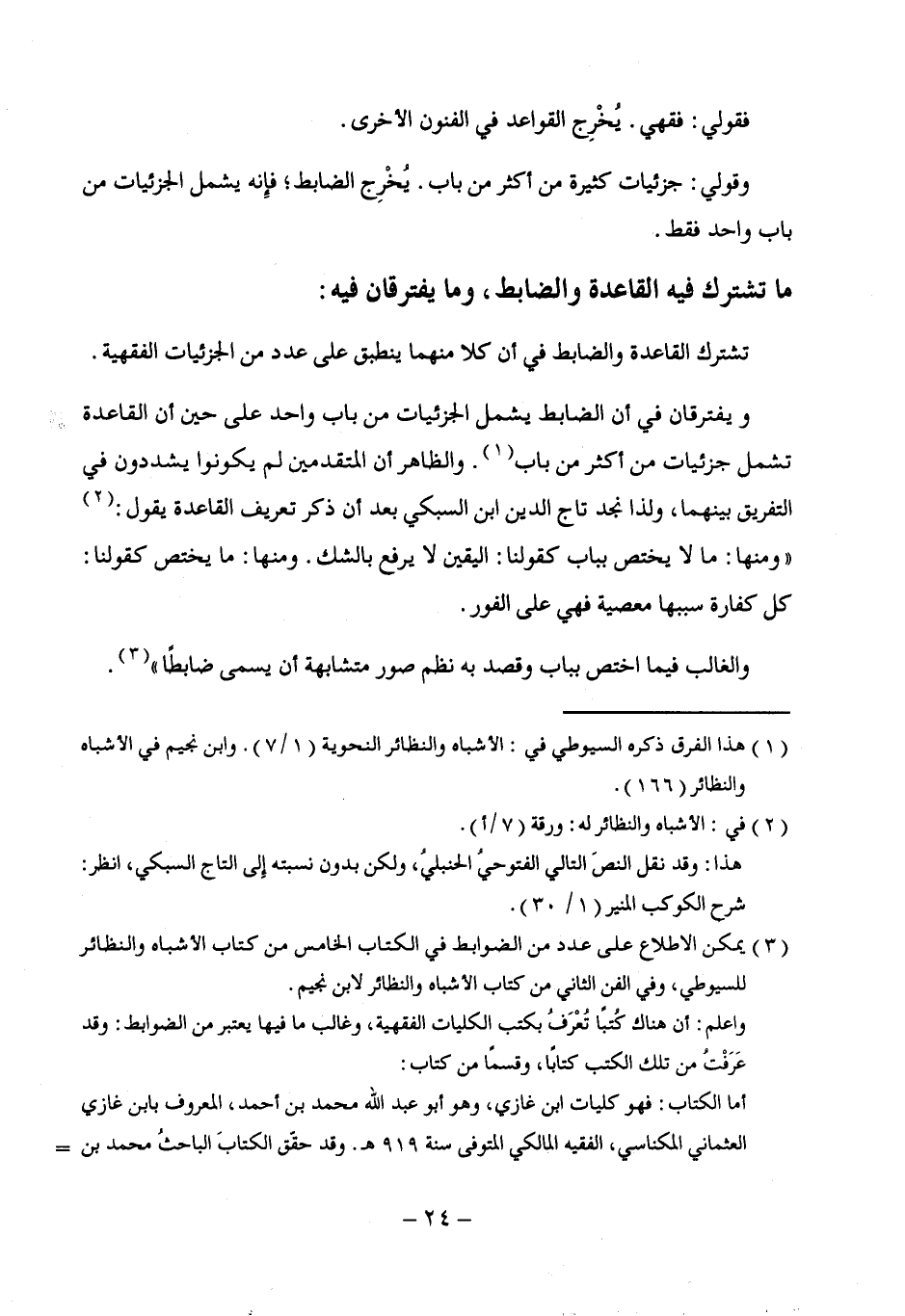 (¬3) يمكن الاطلاع على عدد من الضوابط في الكتاب الخامس من كتاب الأشباه والنظائر للسيوطي، وفي الفن الثاني من كتاب الأشباه والنظائر لابن نجيم.