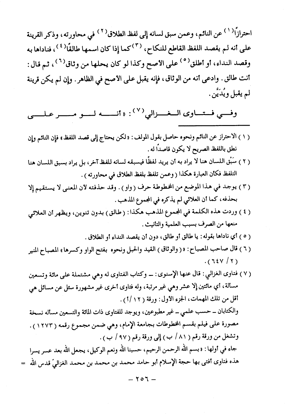 (¬7) فتاوى الغزالي: قال عنها الإسنوى: - وكتاب الفتاوى له وهي مشتملة على مائة وتسعين مسألة، أي مائتين إلَّا عشر وهي غير مرتبة، وله فتاوى أخرى غير مشهورة سئل عن مسائل هي أقل من تلك المهمات، الجزء الأول: ورقة (12 / أ).