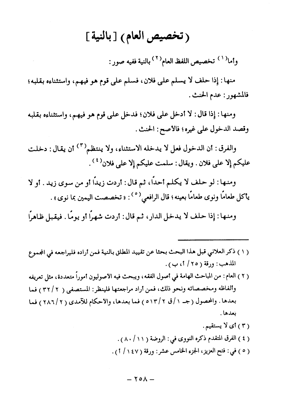 (¬2) العام: من المباحث الهامة في أصول الفقه، ويبحث فيه الأصوليون أمورًا متعددة، مثل تعريفه وألفاظه ومخصصات ونحو ذلك، فمن أراد مراجعتها فلينظر: المستصفى (2/ 32) فما بعدها. والمحصول (ج 1 / ق 2/ 513) فما بعدها، والأحكام للآمدى (2/ 286) فما بعدها.