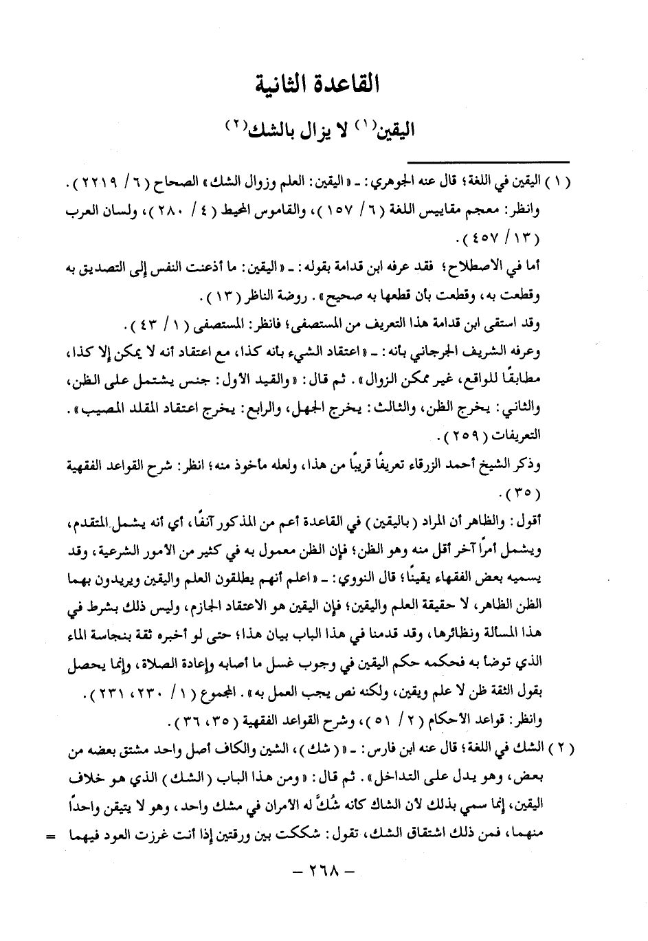 القاعدة الثانية اليقين (¬1) لا يزال بالشك (¬2)