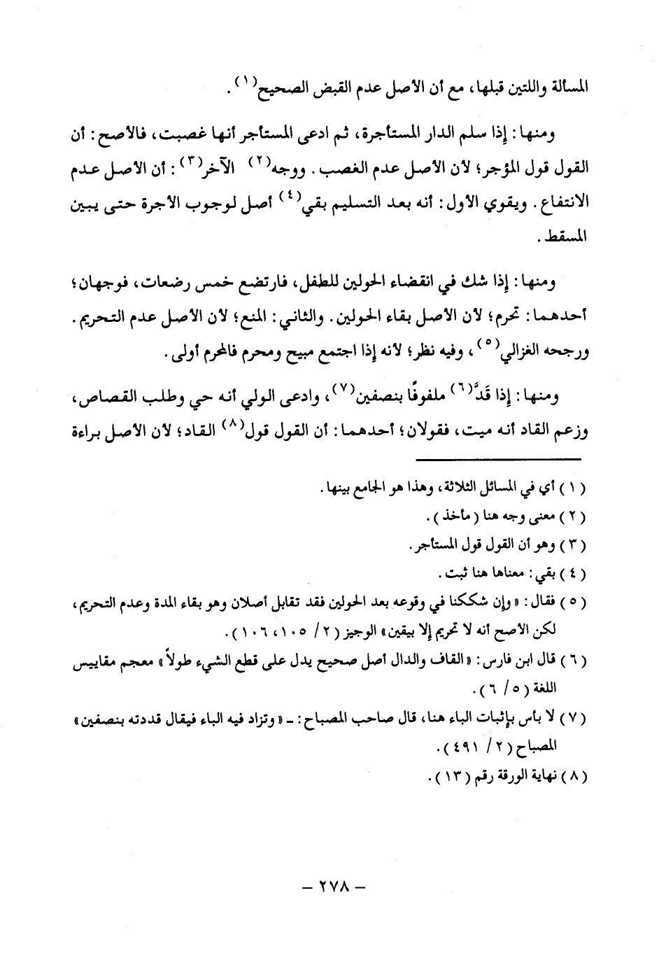 (¬5) فقال: "وإن شككنا في وقوعه بعد الحولين فقد تقابل أصلان وهو بقاء المدة وعدم التحريم؛ لكن الأصح أنه لا تحريم إلَّا بيقين "الوجيز (2/ 105، 106).