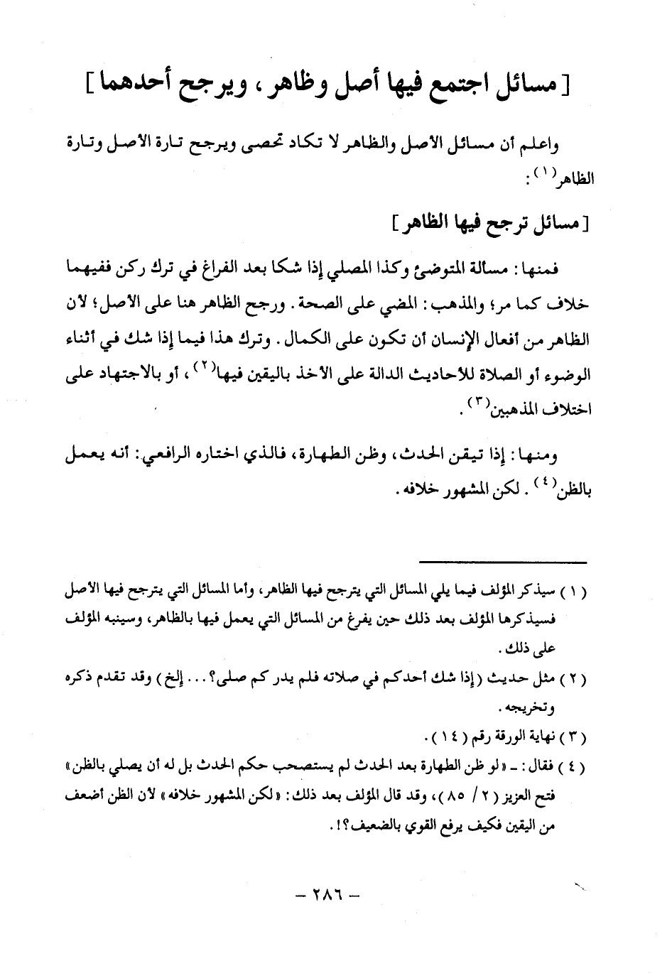 [مسائل اجتمع فيها أصل وظاهر، ويرجح أحدهما]
