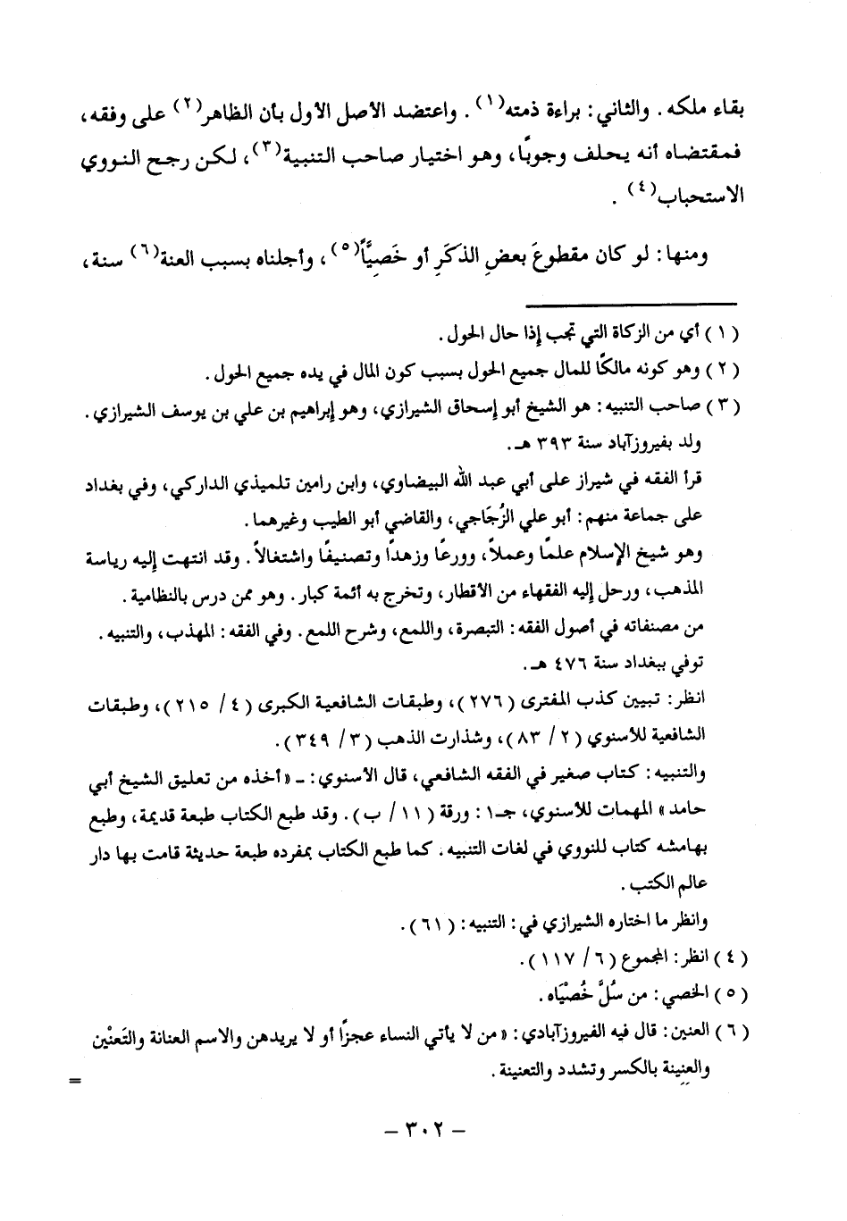 (¬3) صاحب التنبيه: هو الشيخ أبو إِسحاق الشيرازي، وهو إِبراهيم بن على بن يوسف الشيرازي. ولد بفيروزآباد سنة 393 هـ.