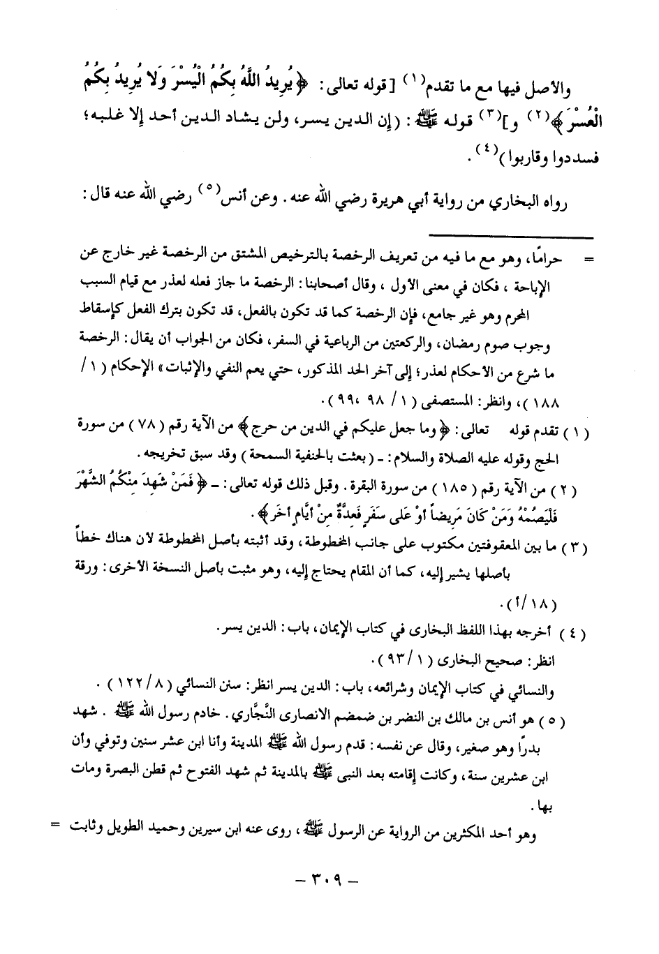 (¬1) تقدم قوله تعالى: {وَمَا جَعَلَ عَلَيْكُمْ فِي الدِّينِ مِنْ حَرَجٍ} من الآية رقم (78) من سورة الحج وقوله عليه الصلاة والسلام - (بعثت بالحنفية السمحة) وقد سبق تخريجه.