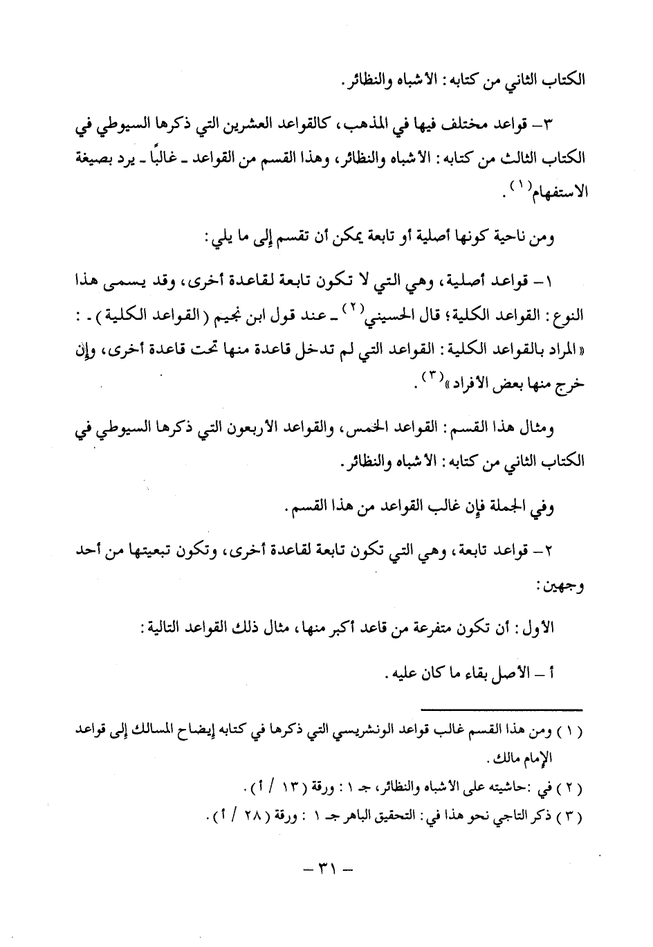(¬1) ومن هذا القسم غالب قواعد الونشريسي التي ذكرها في كتابه إيضاح المسالك إِلى قواعد الإِمام مالك.
