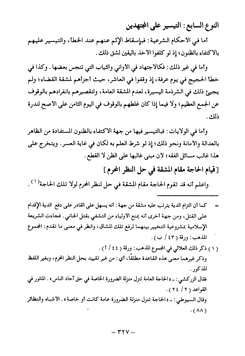 وقال السيوطي: - "الحاجة تنزل منزلة الضرورة عامة كانت أو خاصة" الأشباه والنظائر (88).