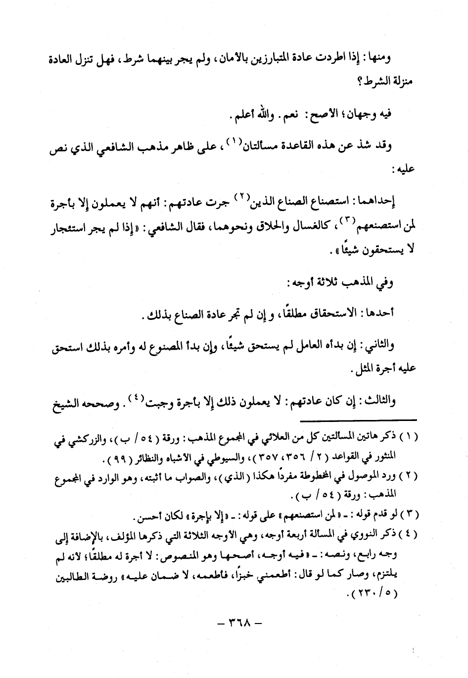 إِحداهما: استصناع الصناع الذين (¬2) جرت عادتهم: أنهم لا يعملون إِلا بأجرة لمن استصنعهم (¬3)، كالغسال والحلاق ونحوهما، فقال الشافعي: "إِذا لم يجر استئجار لا يستحقون شيئًا".