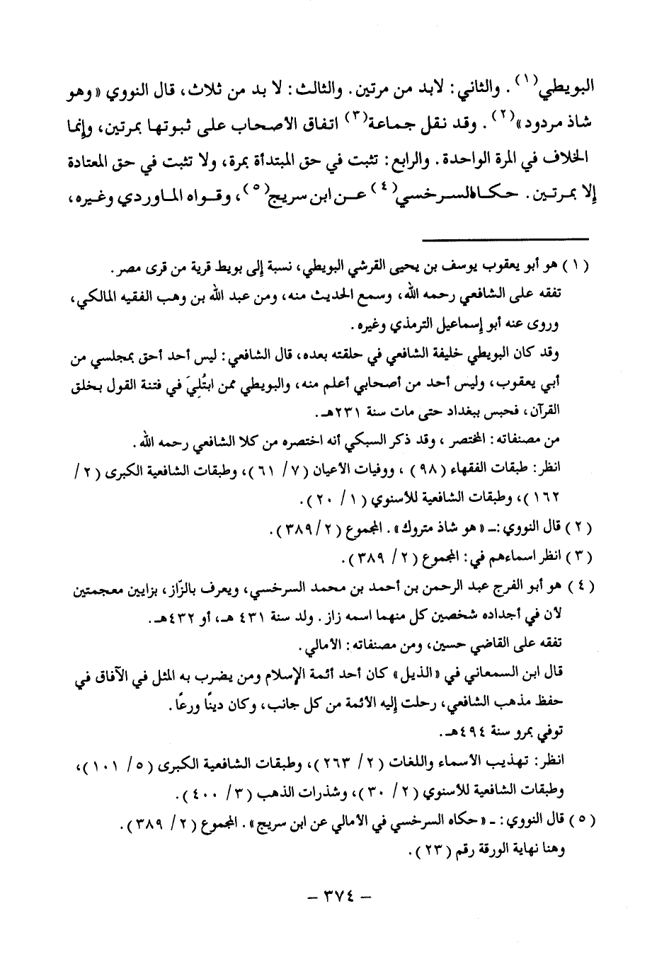 (¬5) قال النووى: - "حكاه السرخسي في الأمالي عن ابن سريج". المجموع (2/ 389).