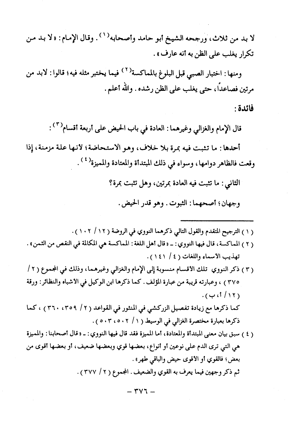 (¬3) ذكر النووى تلك الأقسام منسوبة إِلى الإمام والغزالي وغيرهما، وذلك في المجموع (2/ 375)، وعبارته قريبة من عبارة المؤلف. كما ذكرها ابن الوكيل في الأشباه والنظائر: ورقة (12/ أ، ب).