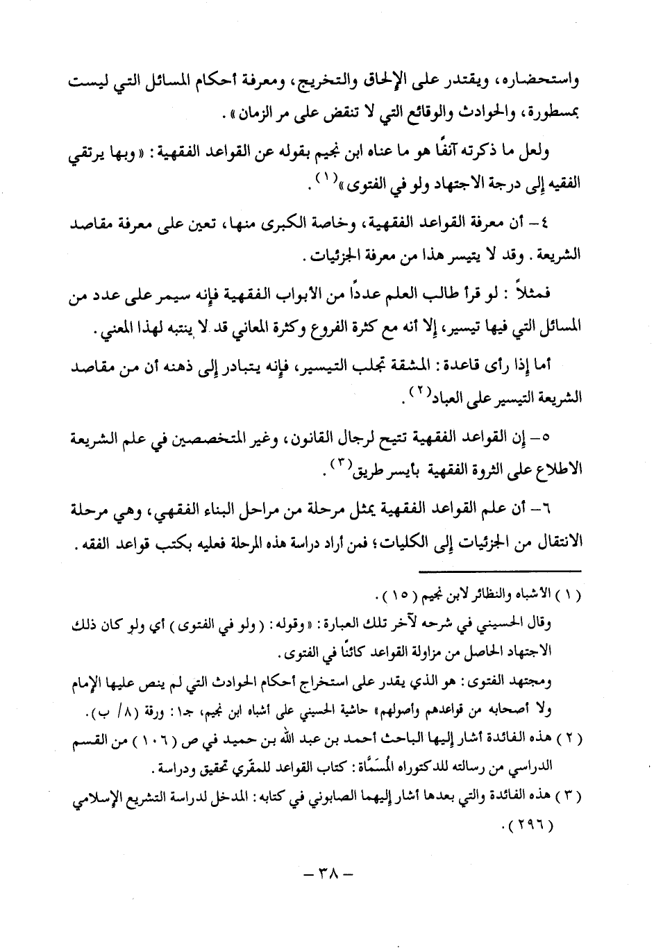 ولعل ما ذكرته آنفًا هو ما عناه ابن نجيم بقوله عن القواعد الفقهية: "وبها يرتقي الفقيه إِلى درجة الاجتهاد ولو في الفتوى" (¬1).