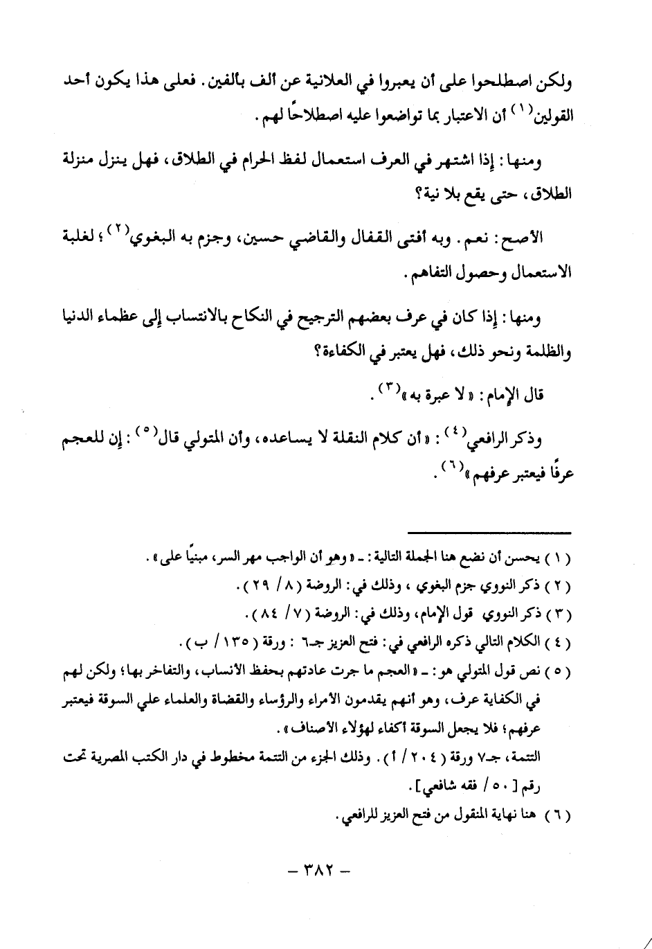 (¬5) نص قول المتولي هو: - "المعجم ما جرت عادتهم بحفظ الأنساب، والتفاخر بها، ولكن لهم في الكفاية عرف، وهو أنهم يقدمون الأمراء والرؤساء والقضاة والعلماء علي السوقة فيعتبر عرفهم، فلا يجعل السوقة أكفاء لهؤلاء الأصناف".