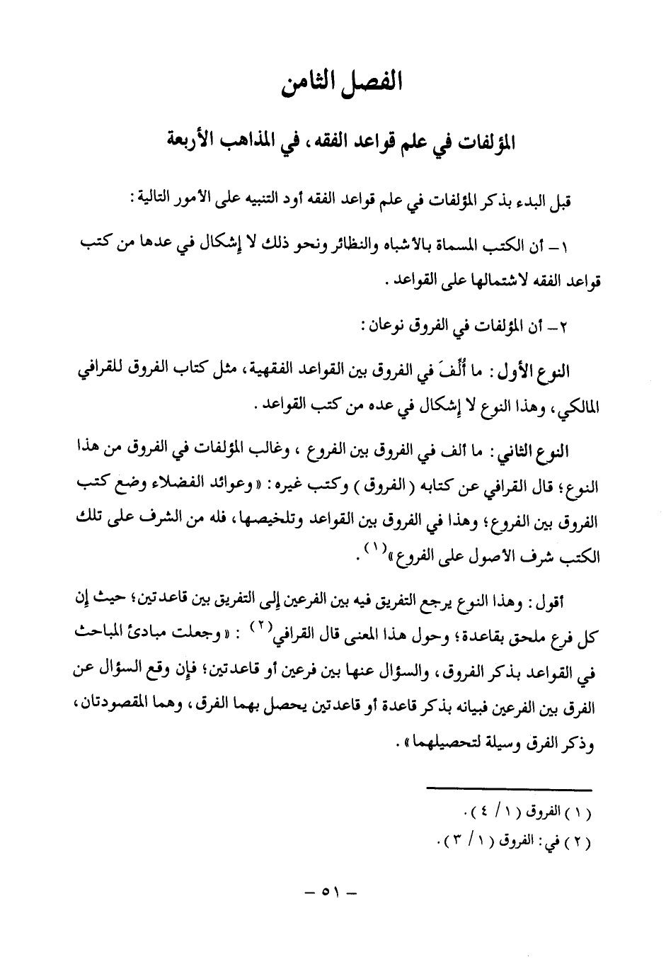 الفصل الثامن المؤلفات في علم قواعد الفقه؛ في المذاهب الأربعة