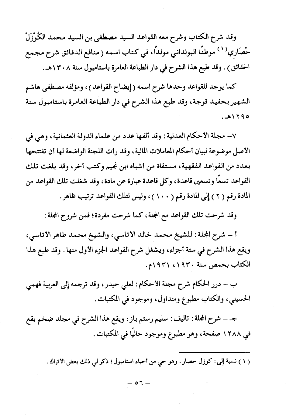 أ - شرح المجلة: للشيخ محمد خالد الأتاسي، والشيخ محمد طاهر الأتاسي، ويقع هذا الشرح في ستة أجزاء، ويشغل شرح القواعد الجزء الأول منها. وقد طبع هذا الكتاب بحمص سنة 1930، 1931 م.