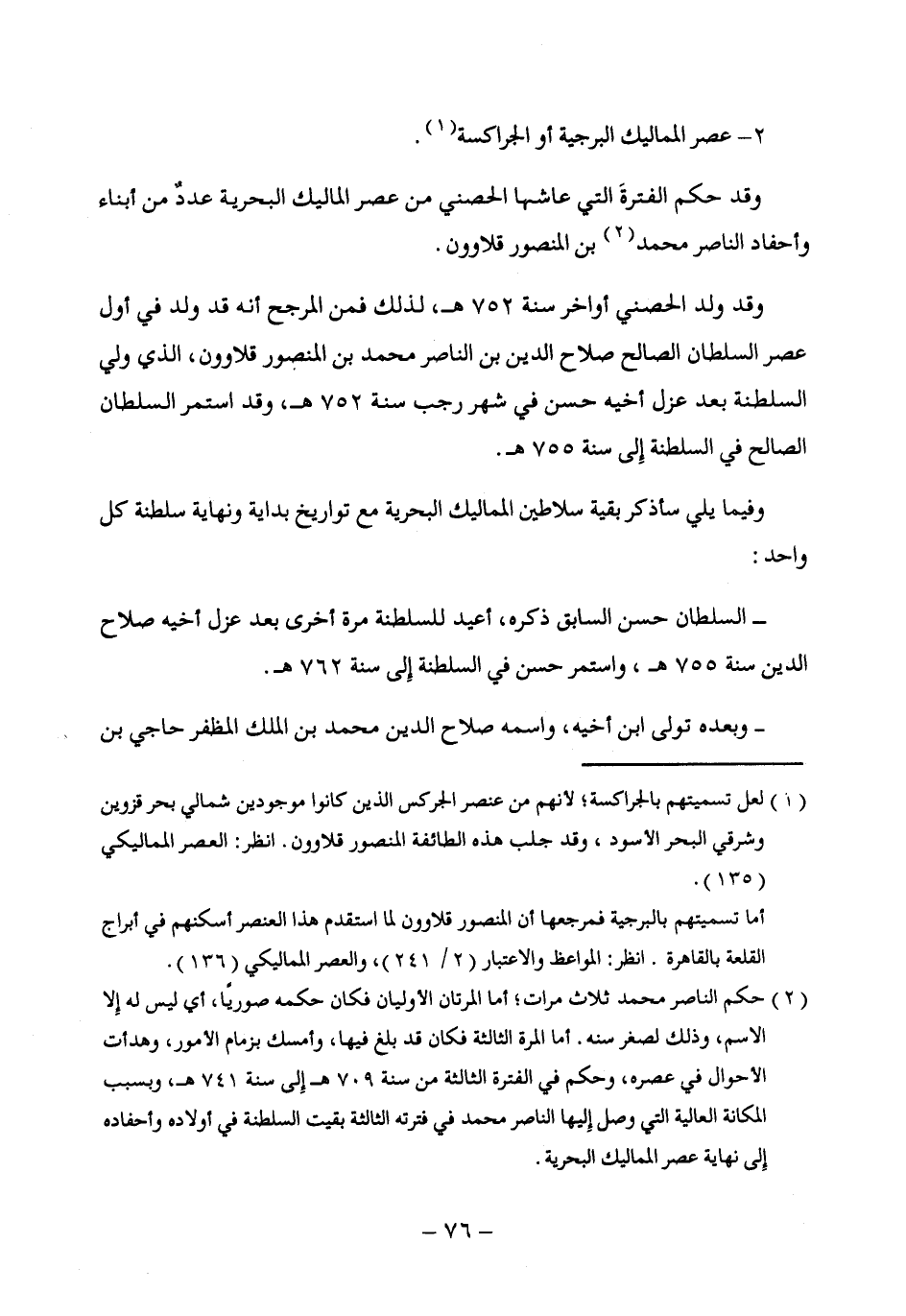 (¬1) لعل تسميتهم بالجراكسة؛ لأنهم من عنصر الجركس الذين كانوا موجودين شمالي بحر قزوين وشرقي البحر الأسود؛ وقد جلب هذه الطائفة المنصور قلاوون. انظر: العصر المماليكي (135).