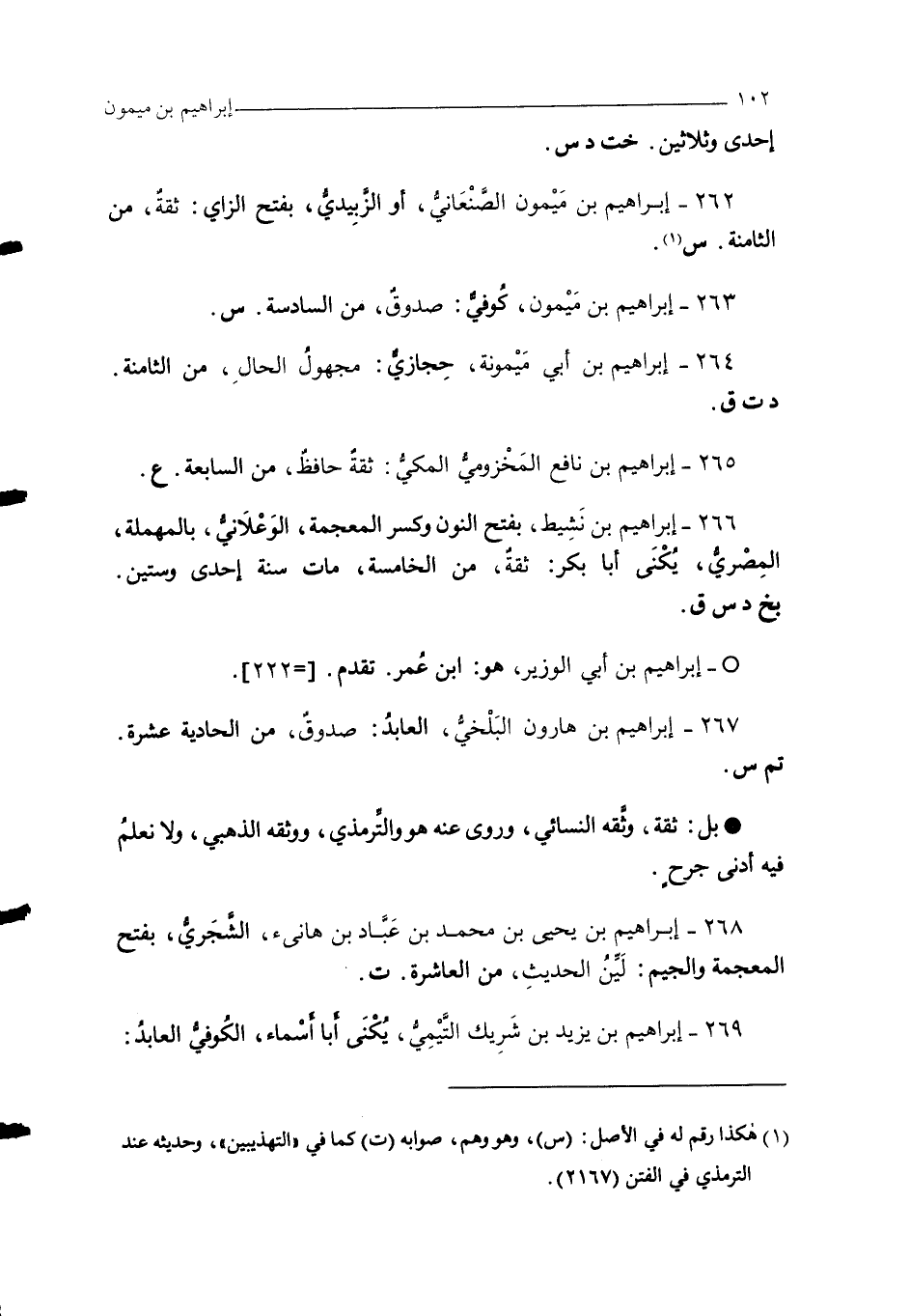 267 - إبراهيم بن هارون البَلْخيُّ، العابدُ: صدوقٌ، من الحادية عشرة. تم س.