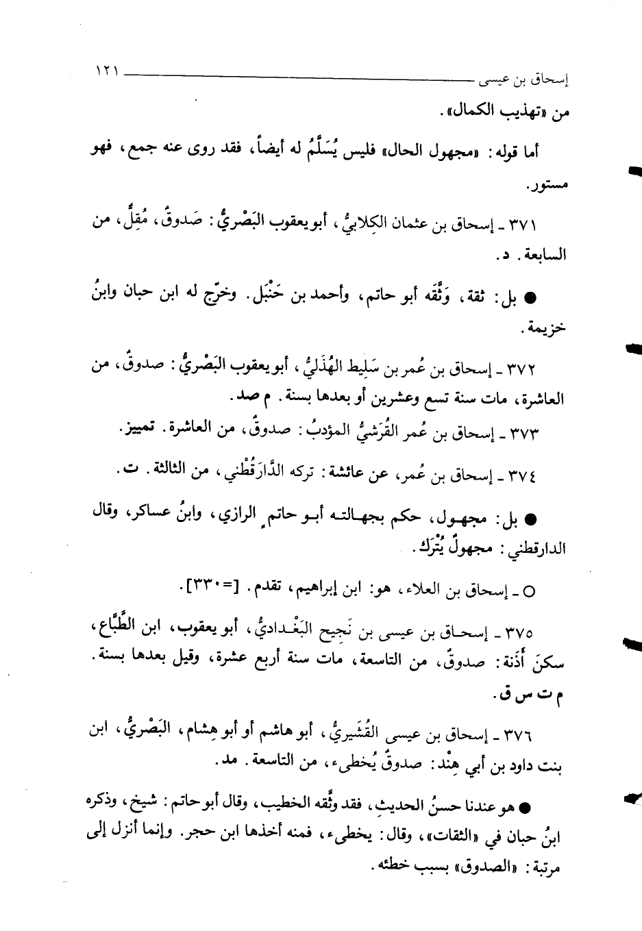 373 - إسحاق بن عُمر القُرشيُّ المؤدبُ: صدوقٌ، من العاشرة. تمييز.