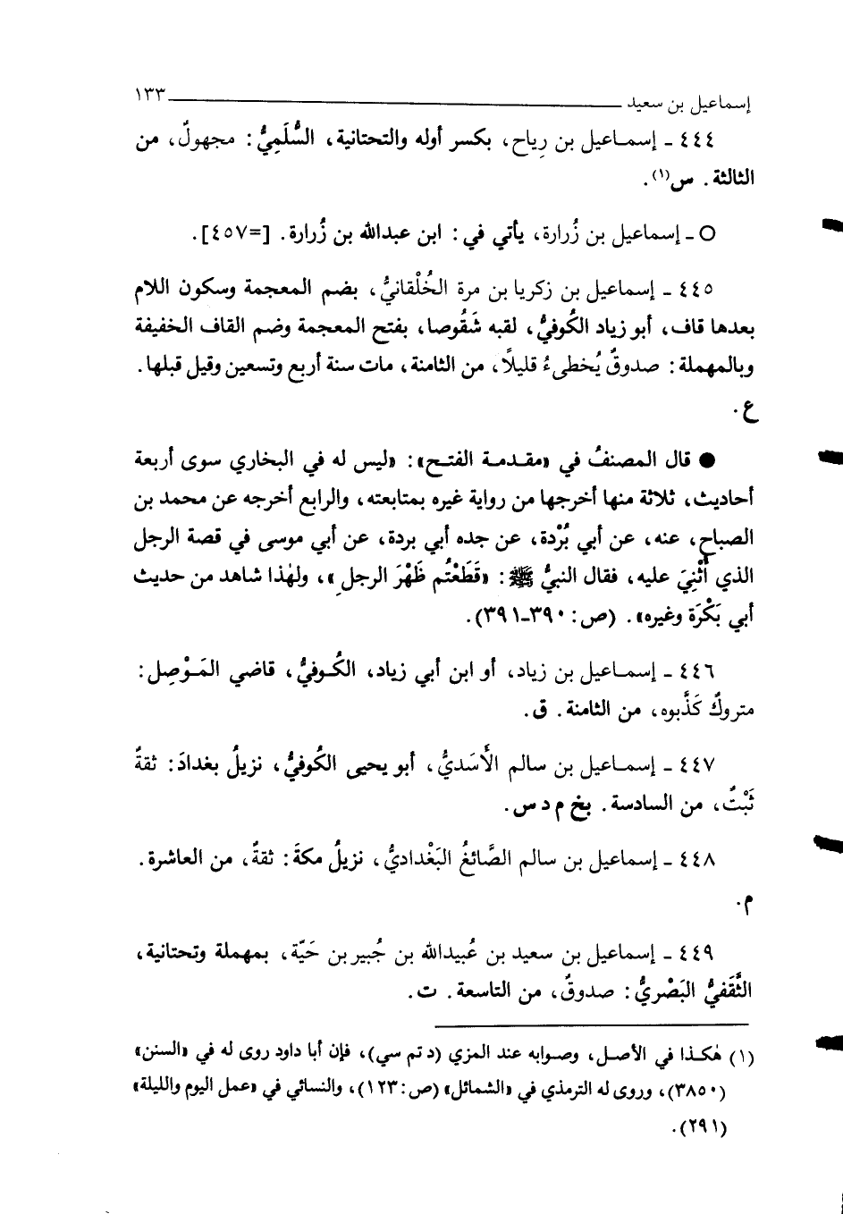 449 - إسماعيل بن سعيد بن عُبيد الله بن جُبير بن حَيّة، بمهملة وتحتانية، الثَّقَفيُّ البَصْريُّ: صدوقٌ، من التاسعة. ت.