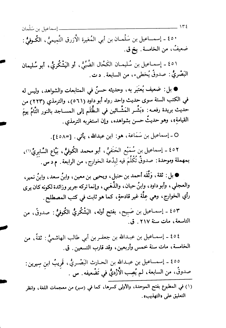 451 - إِسماعيل بن سُليمان الكَحَّال الضَّبِّيُّ، أو اليَشْكُريُّ، أبو سُليمان البَصْريُّ: صدوقٌ يُخطئ، من السابعة. د ت.