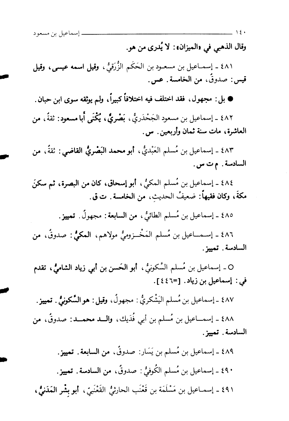 489 - إسماعيل بن مُسلم بن يَسَار: صدوقٌ، من السابعة. تمييز.