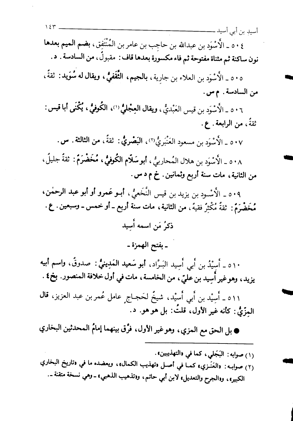 507 - الأسْوَد بن مسعود العَنْبَريُّ (¬2)، البصْريُّ: ثقةٌ، من الثالثة. س.