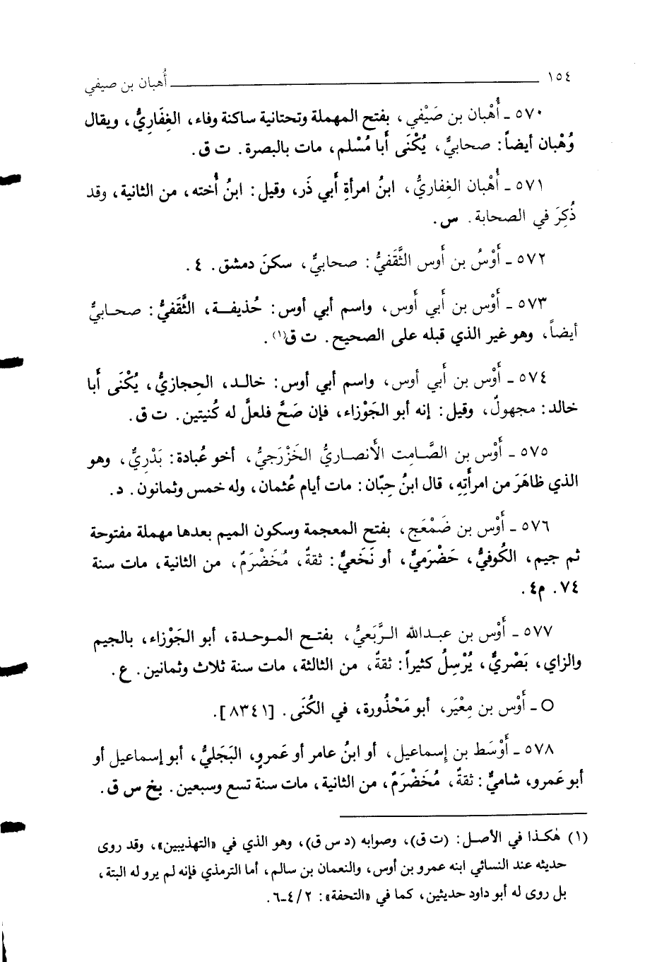 574 - أوْس بن أبي أوس، واسم أبي أوس: خالد، الحِجازي، يُكْنى أَبا خالد: مجهول، وقيل: إنه أبو الجَوْزاء، فإن صَحَّ فلعل له كنيتين. ت ق.