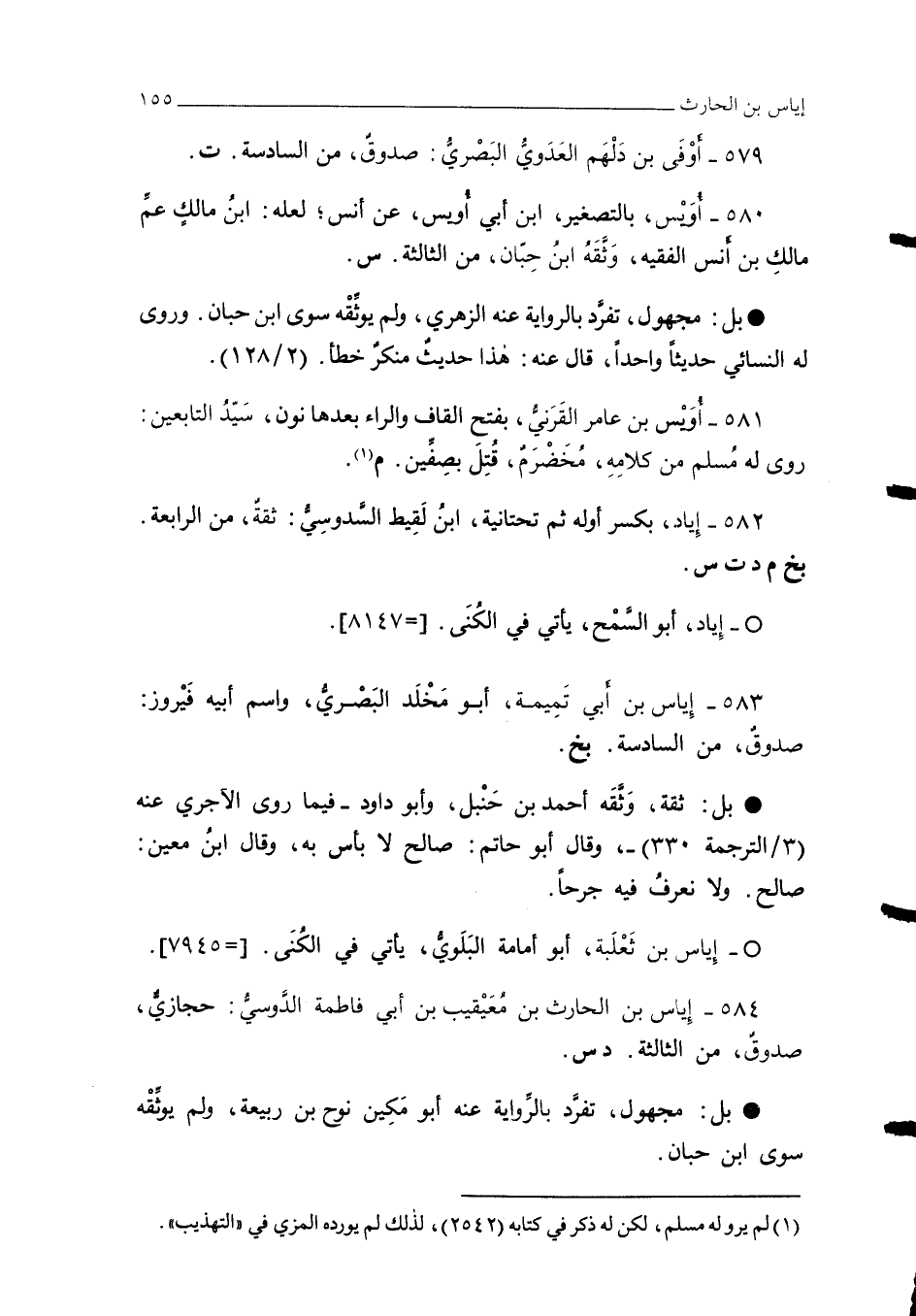 583 - إِياس بن أبي تمِيمة، أبو مَخْلَد البَصْري، واسم أبيه فَيْروز: صدوقٌ، من السادسة. بخ.