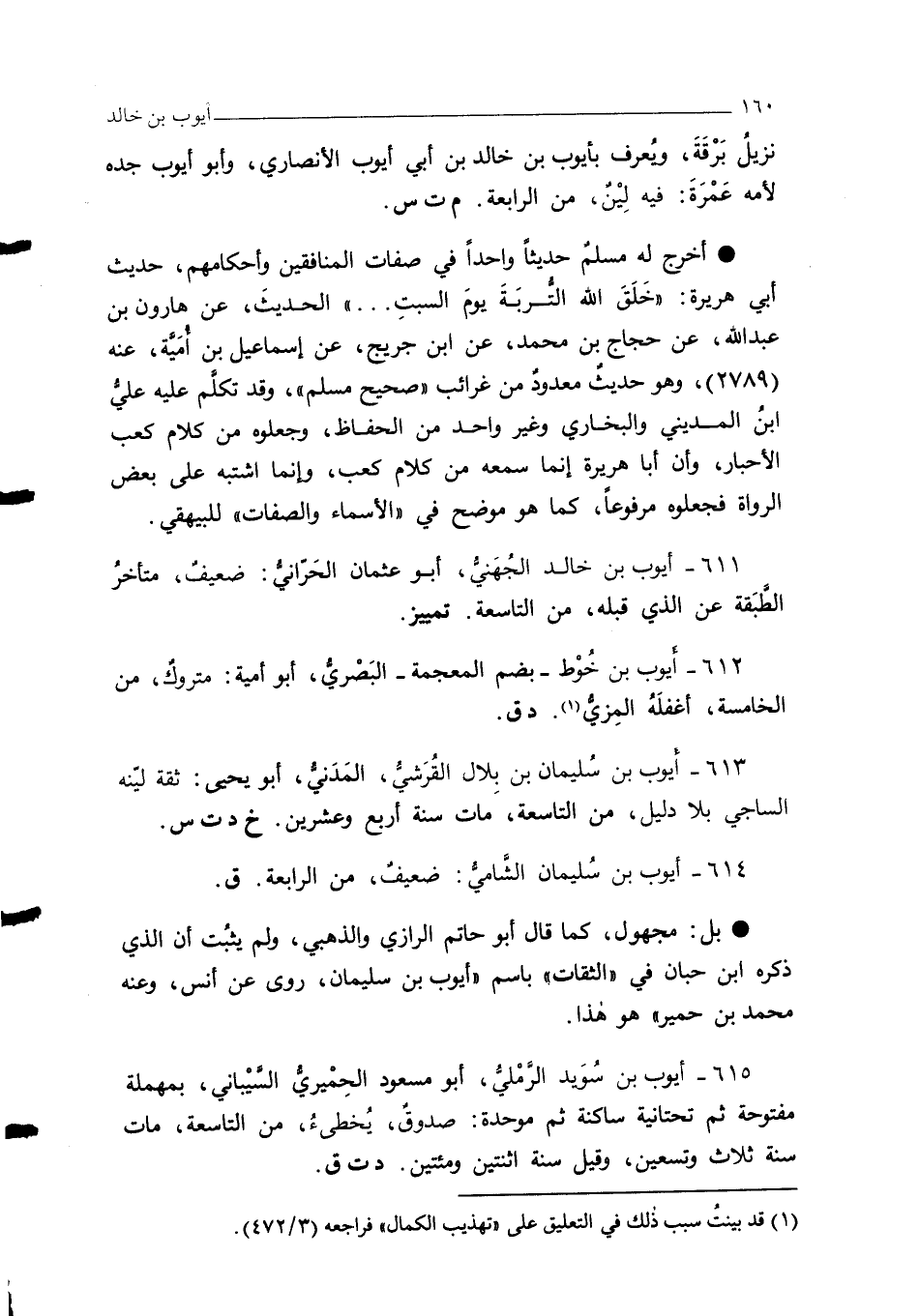 611 - أيوب بن خالد الجهَنيُّ، أبو عثمان الحرانيُّ: ضعيفٌ - متأخرُ الطبقة عن الذي قبله، من التاسعة. تمييز.