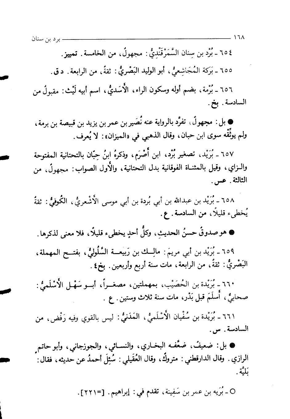 654 - بُرْد بن سِنان السَّمَرْقَنْدِيُّ: مجهولٌ، من الخامسة. تمييز.