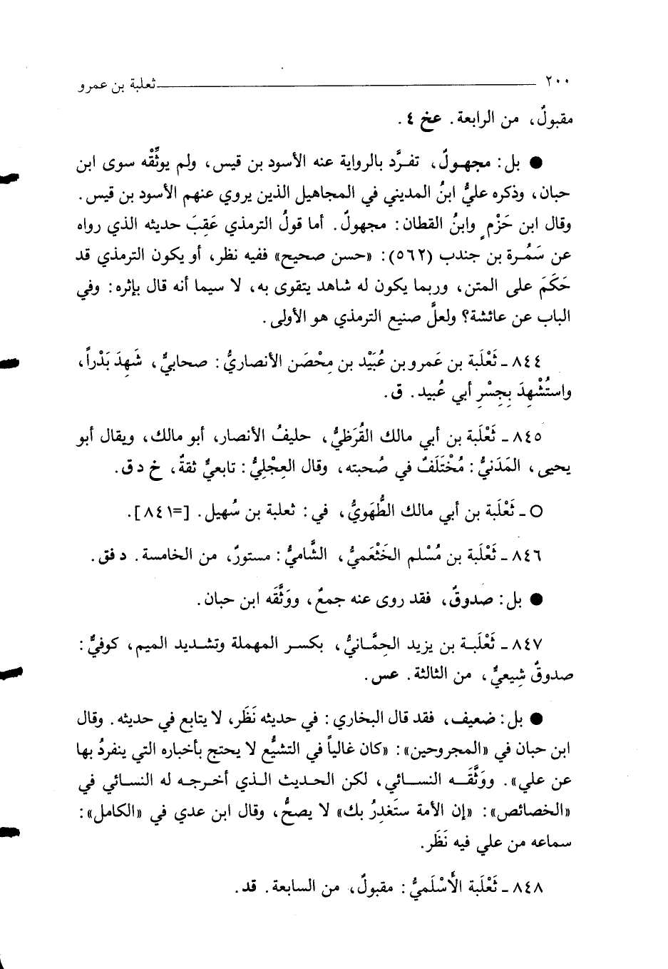 848 - ثَعْلَبة الأَسْلَميُّ: مقبولٌ، من السابعة. قد.
