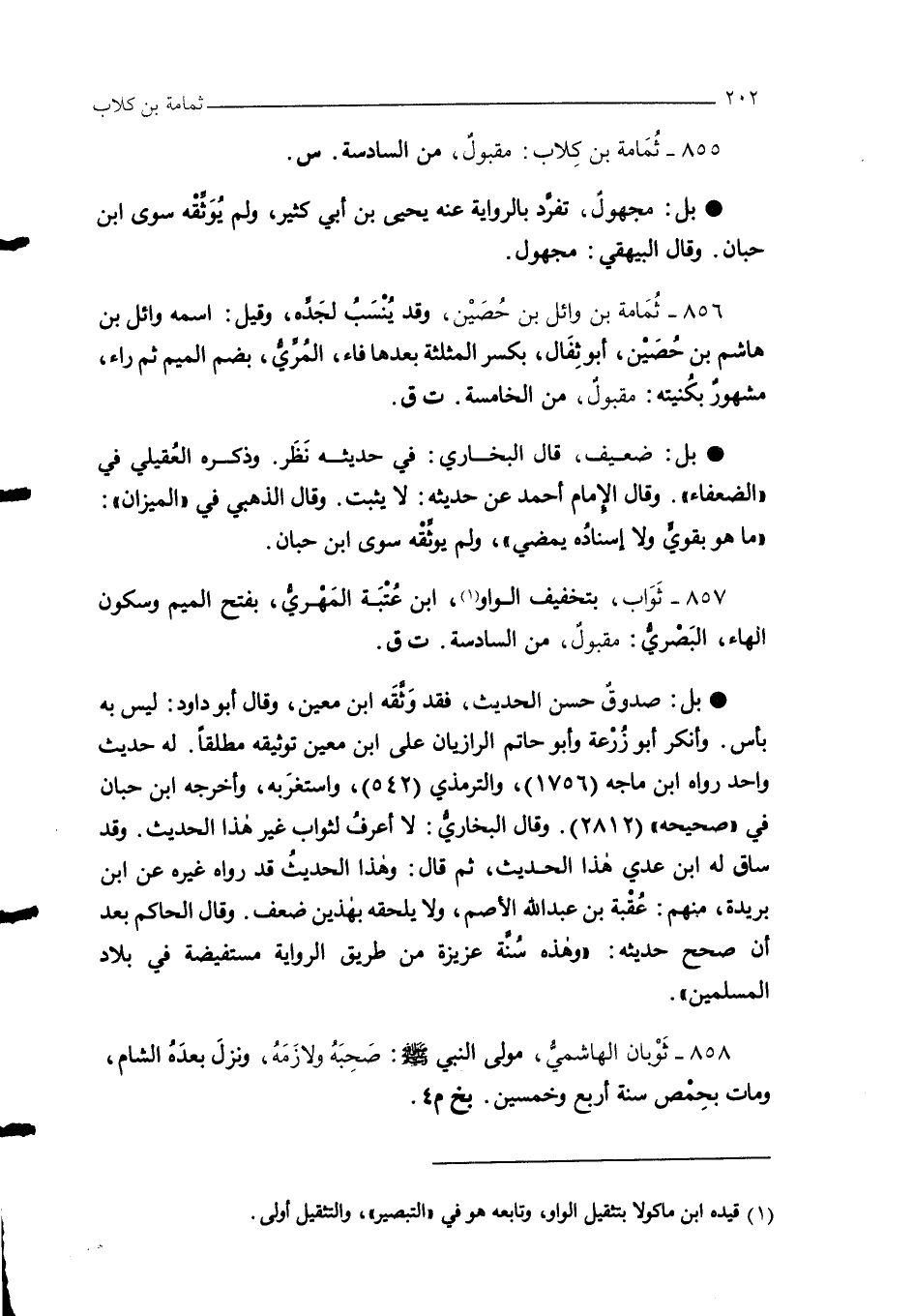 855 - ثُمَامة بن كِلاب: مقبولٌ، من السادسة. س.