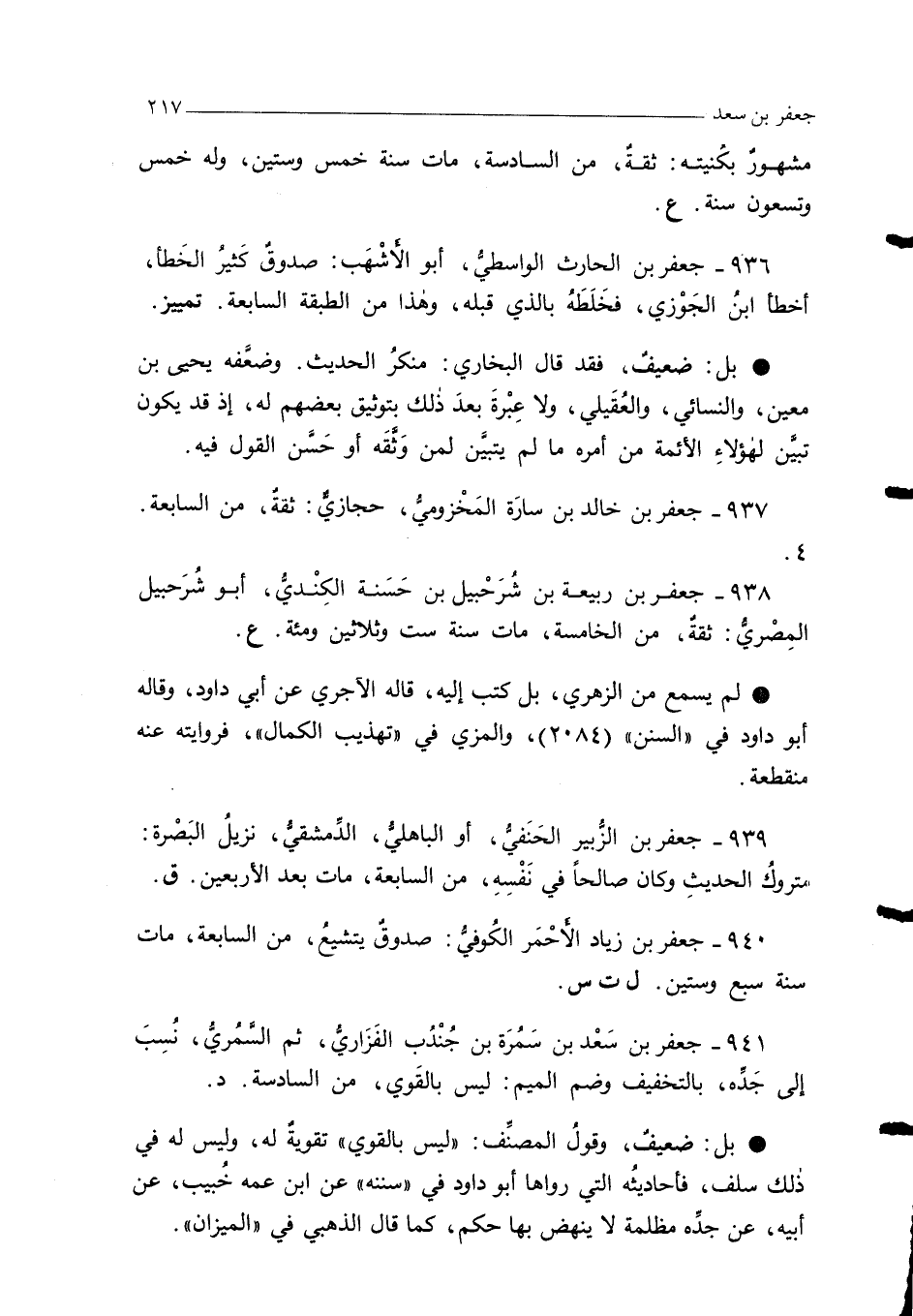 940 - جعفر بن زياد الأَحْمَر الكُوفيُّ: صدوقٌ يتشيعُ، من السابعة، مات سنة سبع وستين. ل ت س.