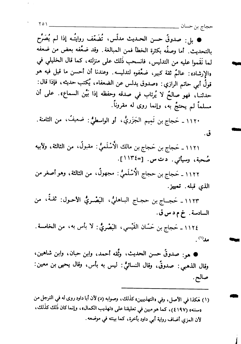 1120 - حَجاج بن تَمِيم الجَزَريُّ، أو الواسطيُّ: ضعيفٌ، من الثامنة. ق.