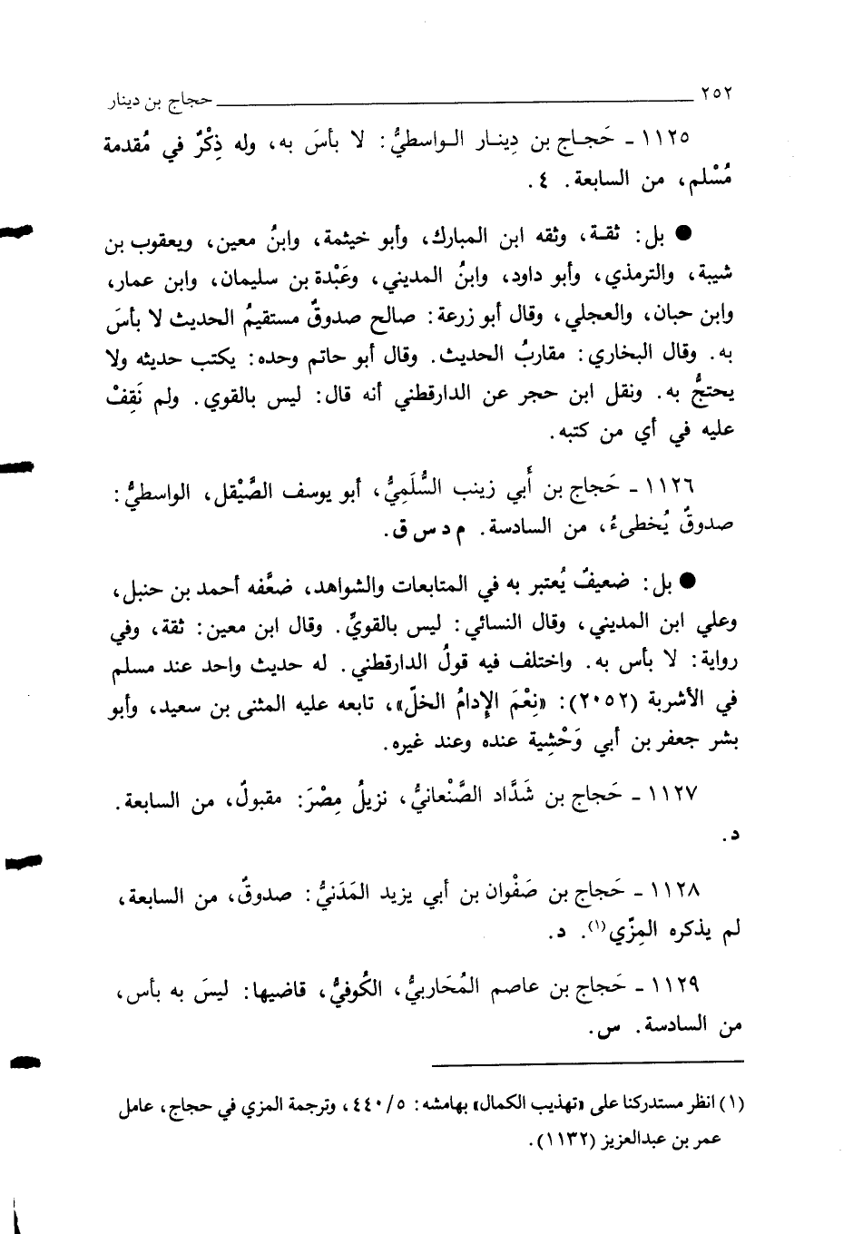1125 - حَجاج بن دِينار الواسطيُّ: لا بأسَ به، وله ذِكْرٌ في مُقدمة مُسْلم، من السابعة. 4.