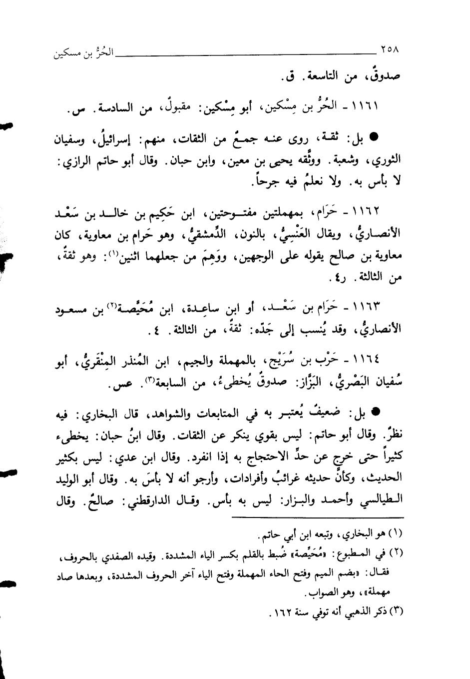 1163 - حَرَام بن سَعْد، أو ابن ساعِدة، ابن مُحَيَّصة (¬2) بن مسعود الأنصاريُّ، وقد يُنسب إلى جَدّه: ثقةٌ، من الثالثة. 4.